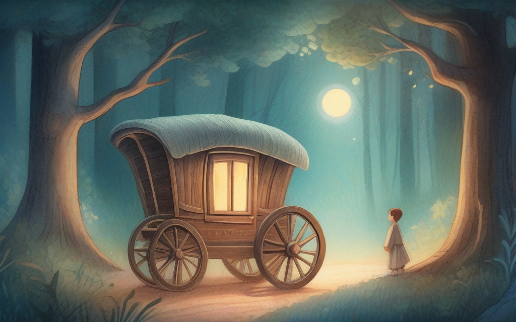 അവൻ അതിൽ ഇരുന്നപ്പോൾ, അവന്റെ മനസ്സിൽ ഒരു ചിന്ത മിന്നിമറഞ്ഞു, “ദൂരെ, കിഴക്ക് സൂര്യൻ ഉദിക്കുന്ന താഴ്വരയിലെ എന്റെ മുത്തശ്ശിയുടെ വീട്ടിലേക്ക്!” അവൻ അത് ഉറക്കെ പറഞ്ഞതും വണ്ടിക്ക് നേരിയൊരു കുലുക്കമുണ്ടായി. കാറ്റിൽ ഇലകൾ പറന്നുപോകുന്നതിനേക്കാൾ വേഗത്തിൽ, വണ്ടി കുതിച്ചുപാഞ്ഞു. അദൃശ്യരായ കുതിരകളുടെ കുളമ്പടി ശബ്ദം ഭൂമിയിൽ മുഴങ്ങാതെ, വണ്ടി ആകാശത്തിലൂടെ പറക്കുന്ന പോലെ തോന്നി. നക്ഷത്രങ്ങൾ അവനെ യാത്രയയച്ചു, കാറ്റ് അവന്റെ തലമുടിയിലൂടെ തലോടി. നിമിഷങ്ങൾക്കകം, അവൻ സ്വപ്നത്തിൽ കണ്ടതുപോലെ, മുത്തശ്ശിയുടെ കൊച്ചുവീടിന്റെ മുന്നിൽ വണ്ടി നിന്നു. കറുപ്പൻ അത്ഭുതസ്തബ്ധനായി. ഈ വണ്ടി ഒരു മാന്ത്രിക വാഹനമാണെന്ന് അവൻ തിരിച്ചറിഞ്ഞു. ഓരോ പൂർണ്ണചന്ദ്ര രാത്രിയിലും, അർദ്ധരാത്രിക്ക് അത് പ്രത്യക്ഷപ്പെടും, അവന്റെ വാക്കുകൾക്ക് അനുസരിച്ച് എവിടേക്കും പറന്നുപോകും! അവന്റെ ഹൃദയത്തിലെ ശൂന്യത പതിയെ മാഞ്ഞുതുടങ്ങി.